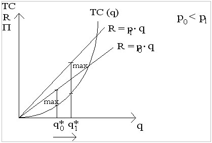 Steigende Produktpreise führen zu einer Ausdehnung der Produktionsmenge, analog führen sinkende Produktionspreise zu einem Rückgang der Outputmenge.